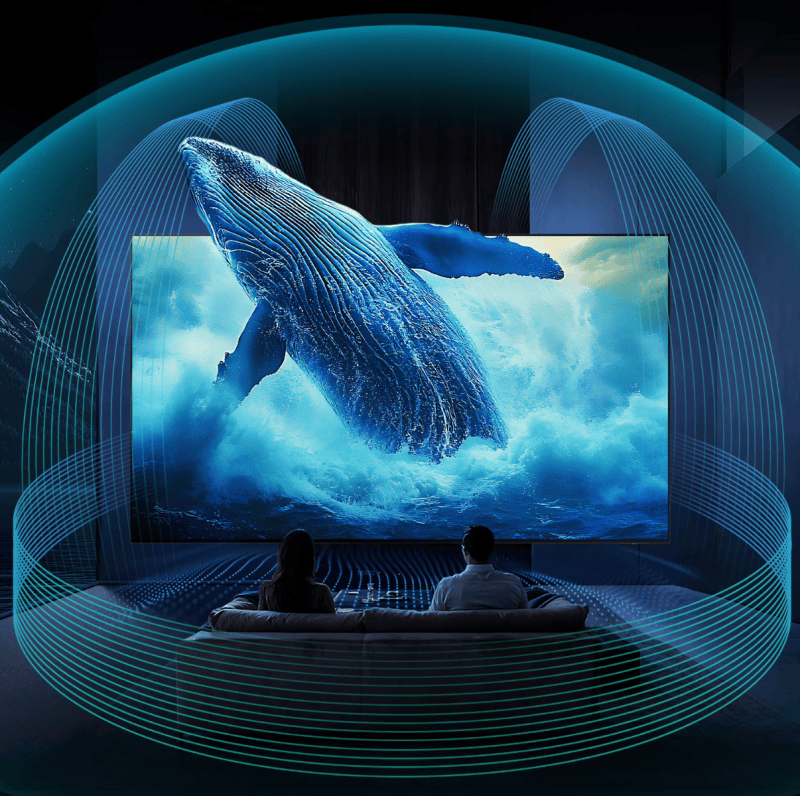 在音效体验上,三星OLED产品通过多重前沿技术打造层次分明的多维声场。其全系列支持杜比全景声,AI驱动的音画追踪技术使声音能够跟随屏幕上的物体移动,增强沉浸感。在复杂声学环境下,自适应音效Pro技术与智能控声AVA Pro技术配合,能够根据声音类型及房间环境进行针对性的音效优化。Q交响乐技术则可实现电视和条形音响协同发声,通过声场的融合与扩展,让声音的层次感与穿透力大幅提升。