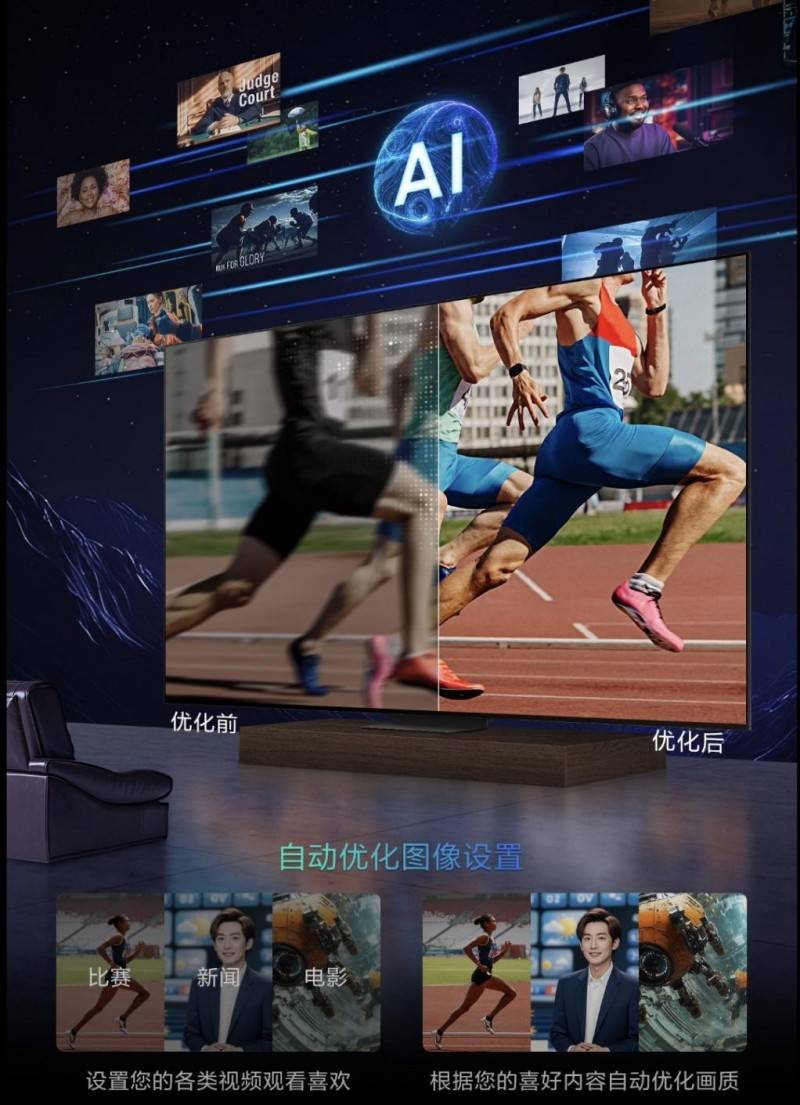 三星OLED产品围绕用户的日常娱乐需求,构建起覆盖影视、游戏等在内的全场景生态,同时通过多元尺寸选择与极具科技美学的设计,为用户打造个性化的娱乐空间。三星OLED全系列搭载One UI Tizen智能系统,“秒开机+无开机广告”的纯净体验使其开机瞬间即可唤醒娱乐功能,用户可一站式获取海量资源。AI观看模式允许用户预先为不同场景自定义亮度、色温等参数组合,当系统智能识别到正在播放的内容类型时,将自动调用用户的专属优化策略,真正实现“量身定制”的观影体验。