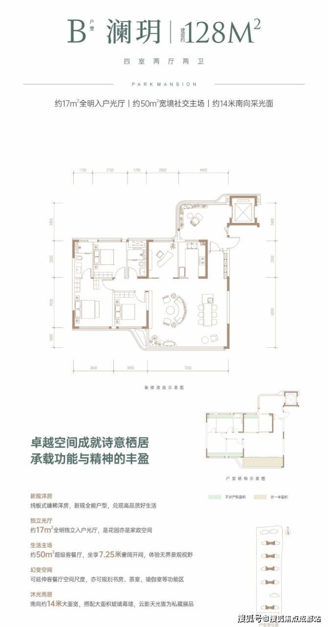 建面约128㎡的户型同样出色,算上入户光厅,总面积约146㎡。若不计算入户光厅,实得面积约129㎡,实得率竟然超过了100%。这意味着购房者花同样的钱,能得到更大的居住空间,性价比极高。区域价值