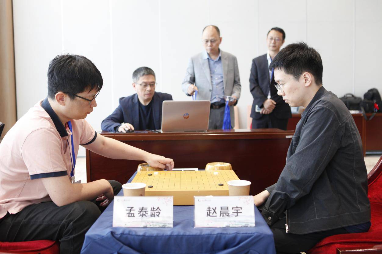 黑马孟泰龄八段此前连胜辜梓豪九段和党毅飞九段两位世冠,此番执黑对新郎官赵晨宇九段的局势一边倒,白棋在右下高效率遏制黑棋成势后,已是明显优势局面。其后黑棋早早放出胜负手,于左上强行出动,与白棋打大劫。大转换的结果是黑棋勉强打赢劫,却断送上边盘黑大块棋,胜率已是个位数。