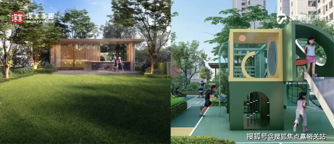 看功能!公区部分,更是把全龄段需求都拿捏了:宝妈带娃有儿童活动区,滑滑梯、大草坪一应俱全!