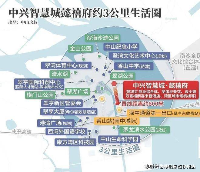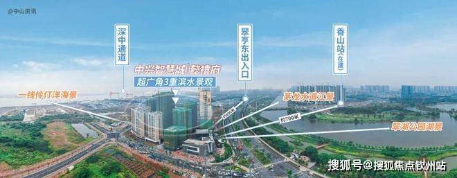 项目距深中通道翠亨东出入口约800米紧邻建设中的南中城际香山站。南中城际香山站与项目楼下的翠湖公园组成“一湖一站”的TOD综合体。